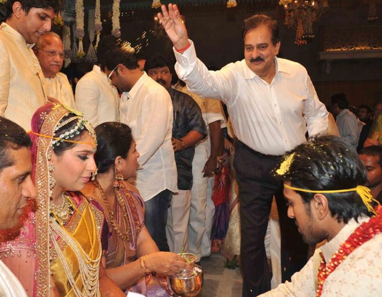 Film celebrities and prominent personalities from political and business field blessed actor Ram Charan Teja, who tied the nuptical knot with childhood sweetheart Upasana Kamineni, at Temple trees, Moinabad on Friday morning.