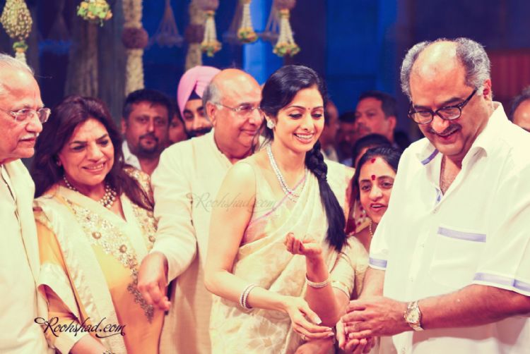 Film celebrities and prominent personalities from political and business field blessed actor Ram Charan Teja, who tied the nuptical knot with childhood sweetheart Upasana Kamineni, at Temple trees, Moinabad on Friday morning.