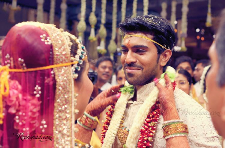 Film celebrities and prominent personalities from political and business field blessed actor Ram Charan Teja, who tied the nuptical knot with childhood sweetheart Upasana Kamineni, at Temple trees, Moinabad on Friday morning.