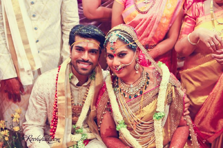 Film celebrities and prominent personalities from political and business field blessed actor Ram Charan Teja, who tied the nuptical knot with childhood sweetheart Upasana Kamineni, at Temple trees, Moinabad on Friday morning.