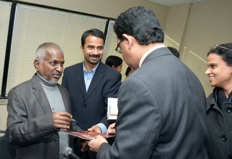 Music Director Ilaiyaraaja speaks at the Press Meet for the Mega Live Concert to be held on Saturday 23rd at the Prudential Center in Newark, NJ organized by iDream Media. Photos by Shivkumar Anand Chikine