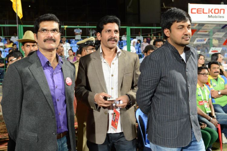 Telugu Warriors playing in Celkon Celebrity Cricket League -3 with Karnataka Bulldozers
