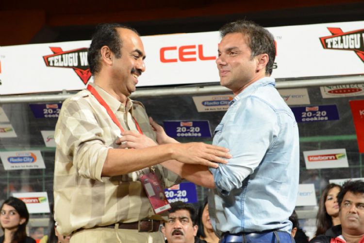 Telugu Warriors playing in Celkon Celebrity Cricket League -3 with Karnataka Bulldozers