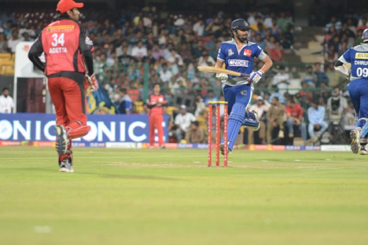 Telugu Warriors playing in Celkon Celebrity Cricket League -3 with Karnataka Bulldozers