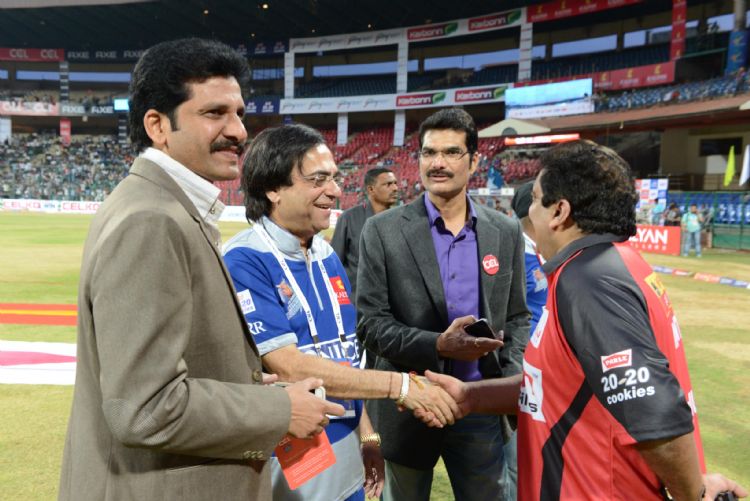 Telugu Warriors playing in Celkon Celebrity Cricket League -3 with Karnataka Bulldozers