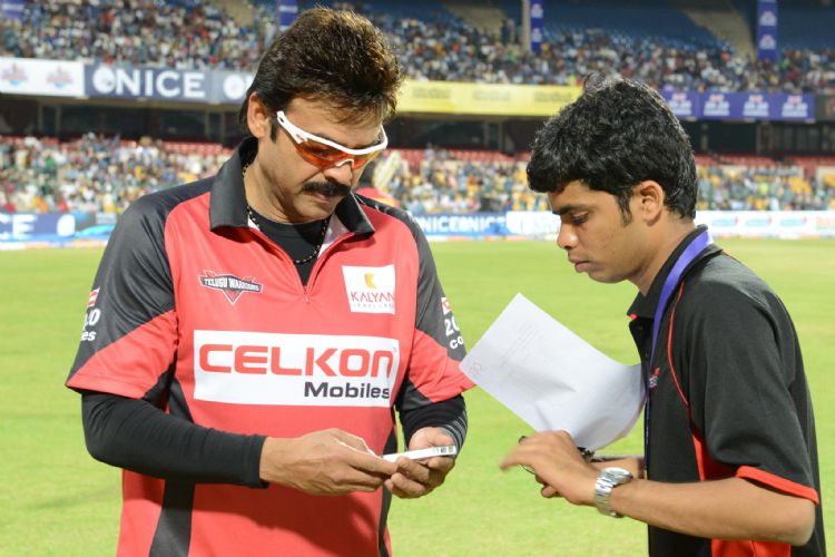 Telugu Warriors playing in Celkon Celebrity Cricket League -3 with Karnataka Bulldozers