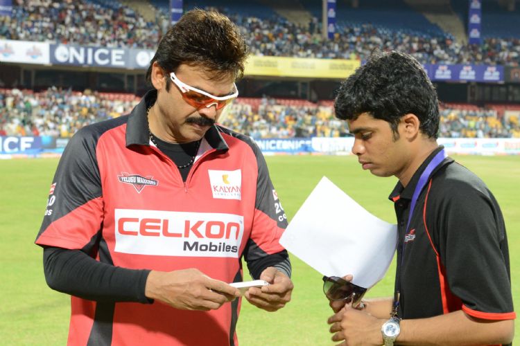 Telugu Warriors playing in Celkon Celebrity Cricket League -3 with Karnataka Bulldozers