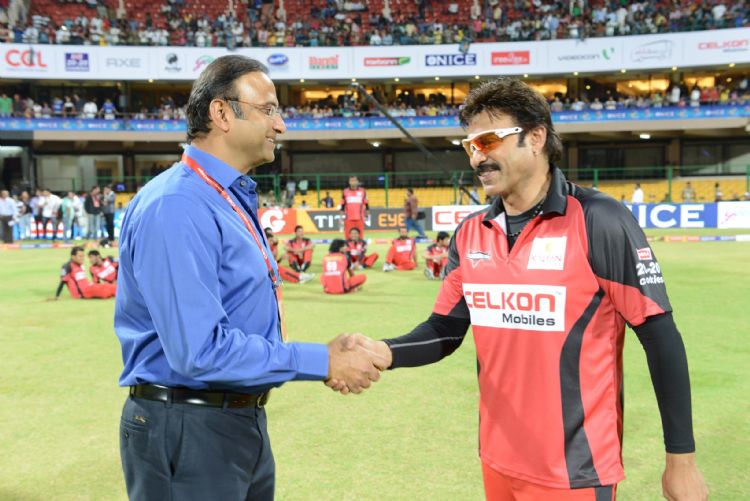 Telugu Warriors playing in Celkon Celebrity Cricket League -3 with Karnataka Bulldozers
