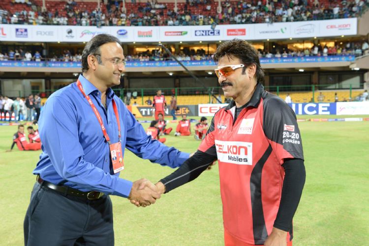 Telugu Warriors playing in Celkon Celebrity Cricket League -3 with Karnataka Bulldozers