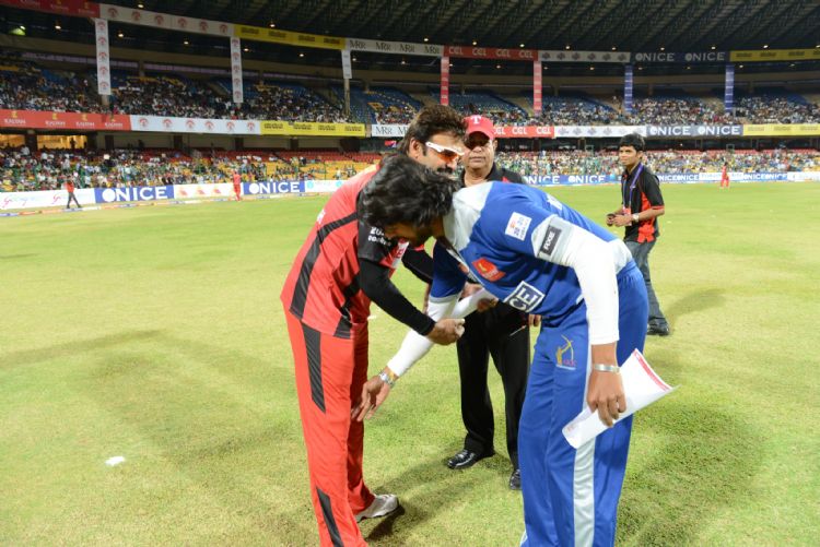 Telugu Warriors playing in Celkon Celebrity Cricket League -3 with Karnataka Bulldozers
