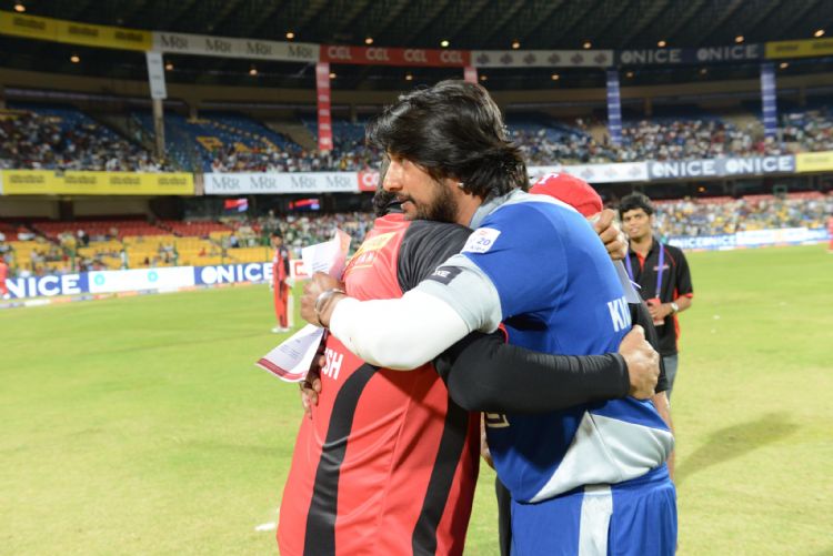 Telugu Warriors playing in Celkon Celebrity Cricket League -3 with Karnataka Bulldozers