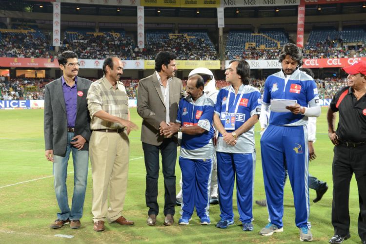 Telugu Warriors playing in Celkon Celebrity Cricket League -3 with Karnataka Bulldozers