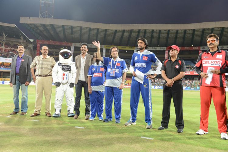 Telugu Warriors playing in Celkon Celebrity Cricket League -3 with Karnataka Bulldozers