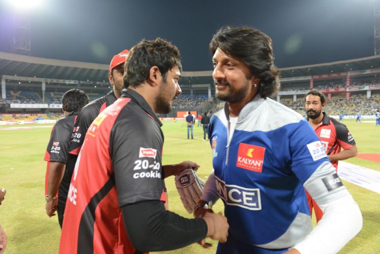 Telugu Warriors playing in Celkon Celebrity Cricket League -3 with Karnataka Bulldozers