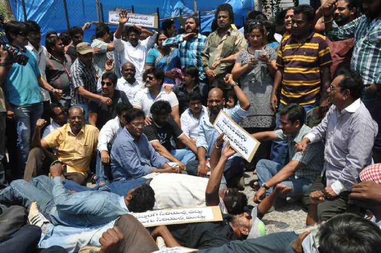 TV Parirakshna Samithi members staging dharna infront of MAA TV channel office