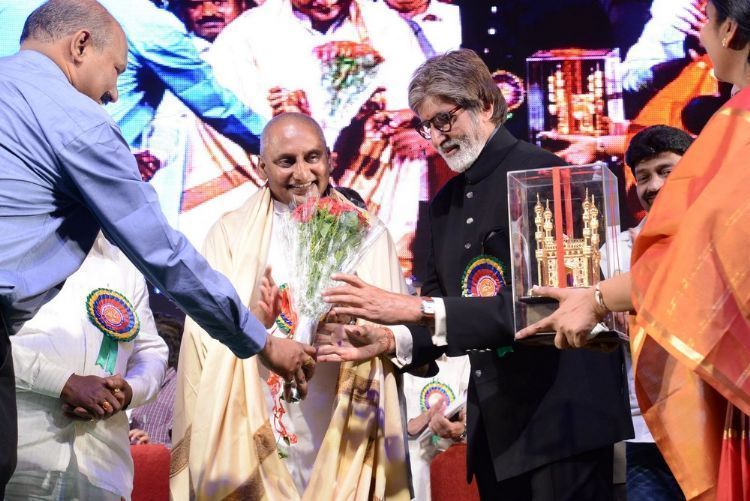 ‘Big B’ Amitabh Bachchan receives NTR National Film Award, Nayantara, Mahesh and Nagarjuna get Nandi awards. The applause that began when his name was announced, rose to a crescendo as the Big ‘B’ got up to receive the NTR National Film Award for 2011 from the hands of Chief Minister N. Kiran Kumar Reddy at a glittering function here on a hot Thursday evening