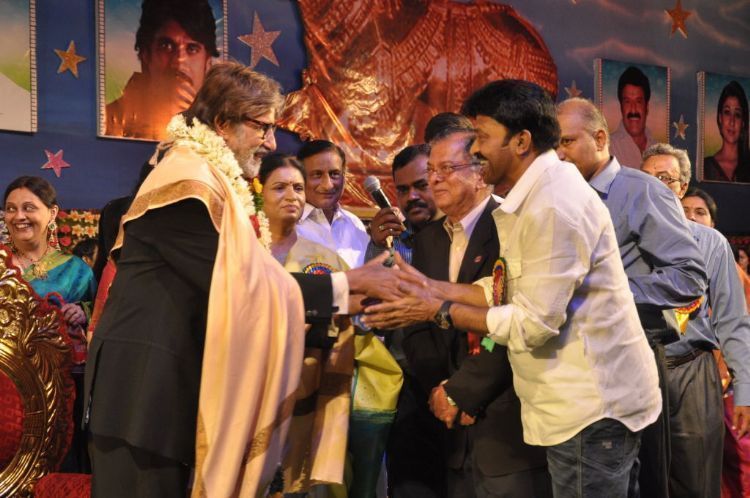 ‘Big B’ Amitabh Bachchan receives NTR National Film Award, Nayantara, Mahesh and Nagarjuna get Nandi awards. The applause that began when his name was announced, rose to a crescendo as the Big ‘B’ got up to receive the NTR National Film Award for 2011 from the hands of Chief Minister N. Kiran Kumar Reddy at a glittering function here on a hot Thursday evening