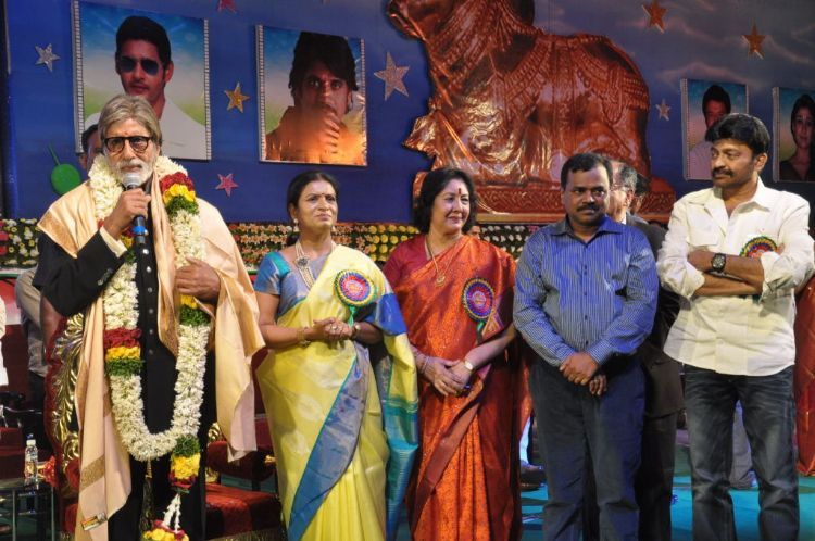 ‘Big B’ Amitabh Bachchan receives NTR National Film Award, Nayantara, Mahesh and Nagarjuna get Nandi awards. The applause that began when his name was announced, rose to a crescendo as the Big ‘B’ got up to receive the NTR National Film Award for 2011 from the hands of Chief Minister N. Kiran Kumar Reddy at a glittering function here on a hot Thursday evening