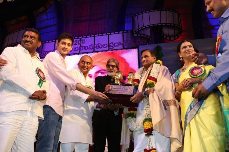 ‘Big B’ Amitabh Bachchan receives NTR National Film Award, Nayantara, Mahesh and Nagarjuna get Nandi awards. The applause that began when his name was announced, rose to a crescendo as the Big ‘B’ got up to receive the NTR National Film Award for 2011 from the hands of Chief Minister N. Kiran Kumar Reddy at a glittering function here on a hot Thursday evening