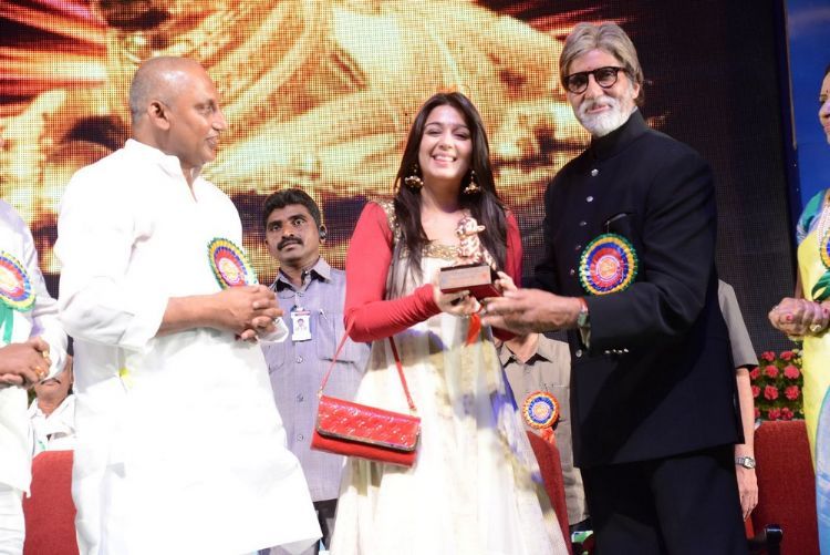 ‘Big B’ Amitabh Bachchan receives NTR National Film Award, Nayantara, Mahesh and Nagarjuna get Nandi awards. The applause that began when his name was announced, rose to a crescendo as the Big ‘B’ got up to receive the NTR National Film Award for 2011 from the hands of Chief Minister N. Kiran Kumar Reddy at a glittering function here on a hot Thursday evening