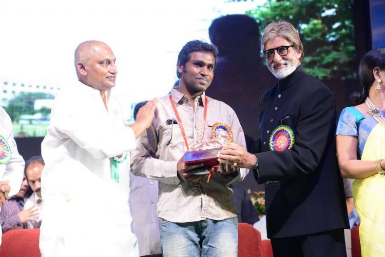 ‘Big B’ Amitabh Bachchan receives NTR National Film Award, Nayantara, Mahesh and Nagarjuna get Nandi awards. The applause that began when his name was announced, rose to a crescendo as the Big ‘B’ got up to receive the NTR National Film Award for 2011 from the hands of Chief Minister N. Kiran Kumar Reddy at a glittering function here on a hot Thursday evening