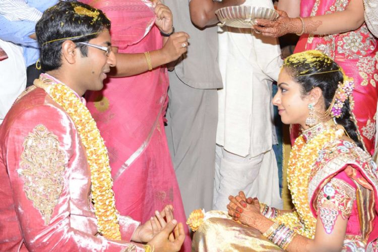 Actor Nandamuri Balakrishna�s younger daughter Tejaswini ties the knot with Sri Bharat at a grand ceremony held in HiTex Convention Center in Hyderabad on Wednesday. Several top political leaders and celebrities of Telugu and Tamil film industry attended the event and blessed the newlywed couple.