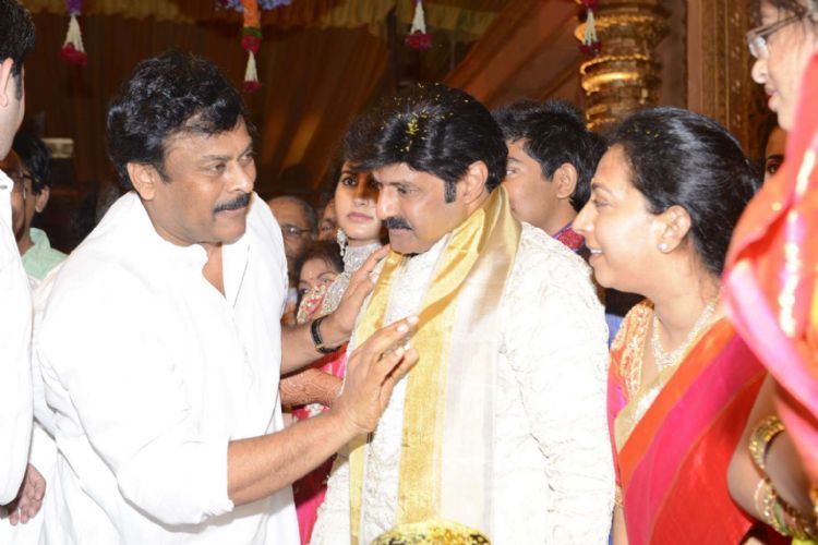Actor Nandamuri Balakrishna�s younger daughter Tejaswini ties the knot with Sri Bharat at a grand ceremony held in HiTex Convention Center in Hyderabad on Wednesday. Several top political leaders and celebrities of Telugu and Tamil film industry attended the event and blessed the newlywed couple.