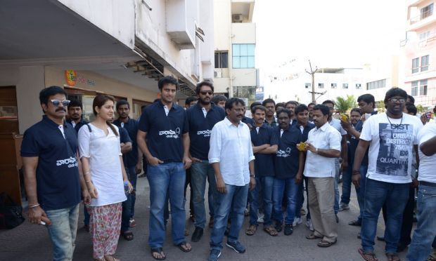 Producer Sai Korrapati after announcing 100 tonnes of rice for Hudhud cyclone victims, visited Vizag along with Srinivas Avasarala, Ajay, Rashi Khanna, Trikoti and other Vaarahi team members.Sai distributed the rice and donated cheques to various social organizations and CM relief fund. Big Heart right!