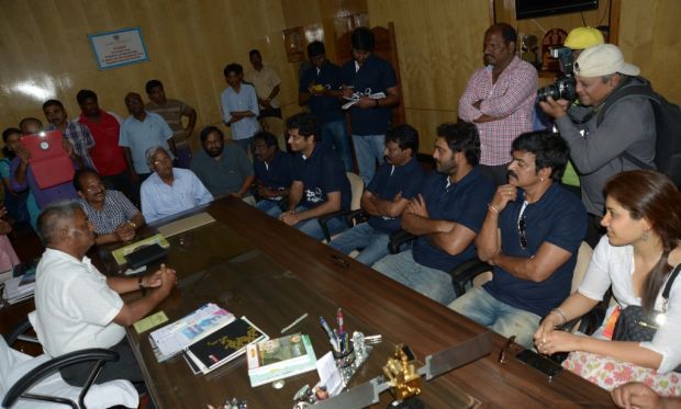 Producer Sai Korrapati after announcing 100 tonnes of rice for Hudhud cyclone victims, visited Vizag along with Srinivas Avasarala, Ajay, Rashi Khanna, Trikoti and other Vaarahi team members.Sai distributed the rice and donated cheques to various social organizations and CM relief fund. Big Heart right!