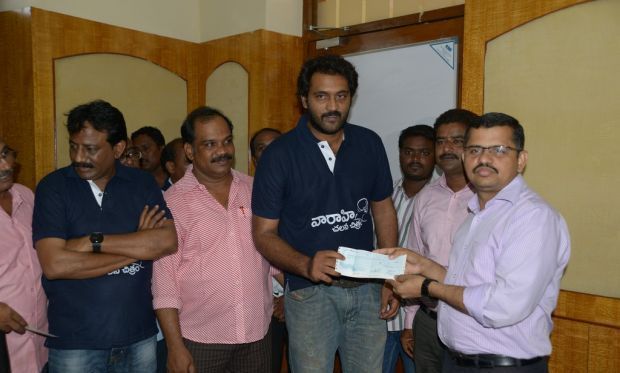 Producer Sai Korrapati after announcing 100 tonnes of rice for Hudhud cyclone victims, visited Vizag along with Srinivas Avasarala, Ajay, Rashi Khanna, Trikoti and other Vaarahi team members.Sai distributed the rice and donated cheques to various social organizations and CM relief fund. Big Heart right!