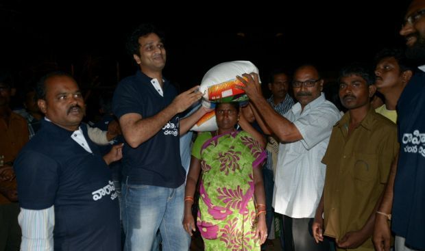 Producer Sai Korrapati after announcing 100 tonnes of rice for Hudhud cyclone victims, visited Vizag along with Srinivas Avasarala, Ajay, Rashi Khanna, Trikoti and other Vaarahi team members.Sai distributed the rice and donated cheques to various social organizations and CM relief fund. Big Heart right!