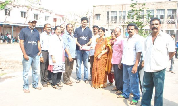 Producer Sai Korrapati after announcing 100 tonnes of rice for Hudhud cyclone victims, visited Vizag along with Srinivas Avasarala, Ajay, Rashi Khanna, Trikoti and other Vaarahi team members.Sai distributed the rice and donated cheques to various social organizations and CM relief fund. Big Heart right!