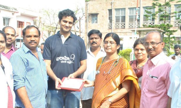 Producer Sai Korrapati after announcing 100 tonnes of rice for Hudhud cyclone victims, visited Vizag along with Srinivas Avasarala, Ajay, Rashi Khanna, Trikoti and other Vaarahi team members.Sai distributed the rice and donated cheques to various social organizations and CM relief fund. Big Heart right!