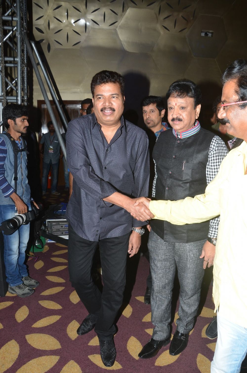 Telugu audio of Shankar's 'i' released at a grand event in Park hotel, Hyderabad, Director SS Rajamouli launched the audio and gave the first CD to director Trivikram Srinivas. The film will release on Sankranthi.