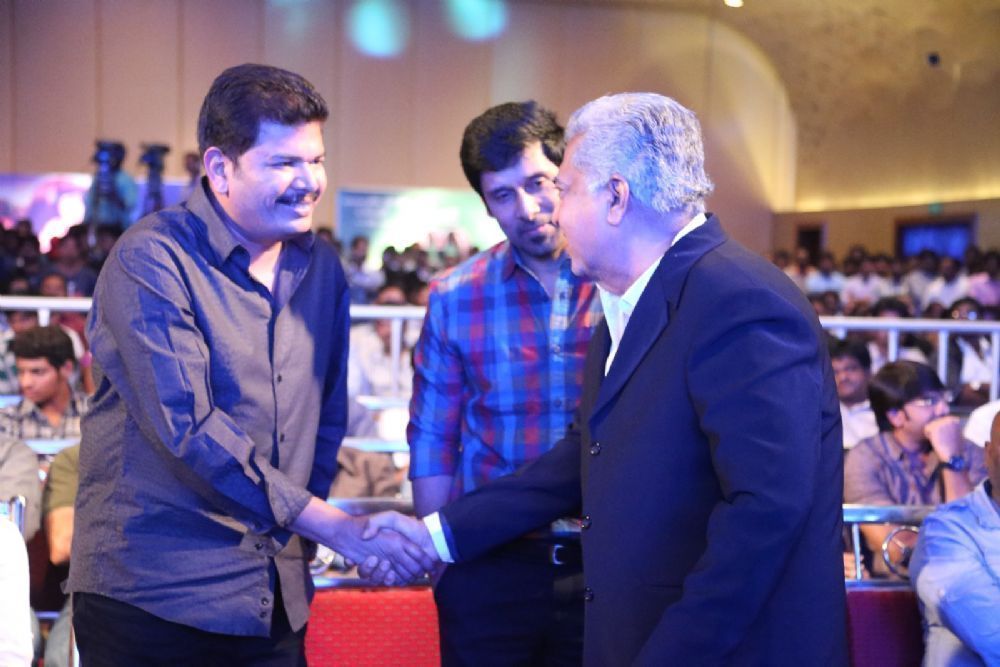 Telugu audio of Shankar's 'i' released at a grand event in Park hotel, Hyderabad, Director SS Rajamouli launched the audio and gave the first CD to director Trivikram Srinivas. The film will release on Sankranthi.