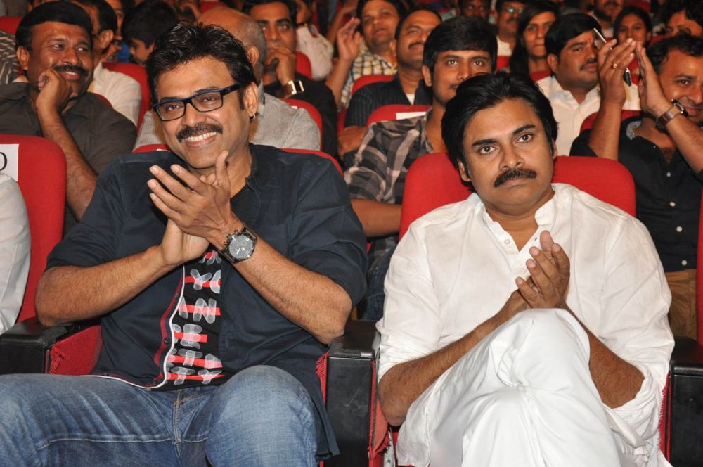 Pawan Kalyan and Venkatesh's "Gopala Gopala" audio released at a grand event in Shilpa Kala Vedika. Director Trivikram Srinivas attended as chief guest. Makers are planning to release the movie on 9th January.