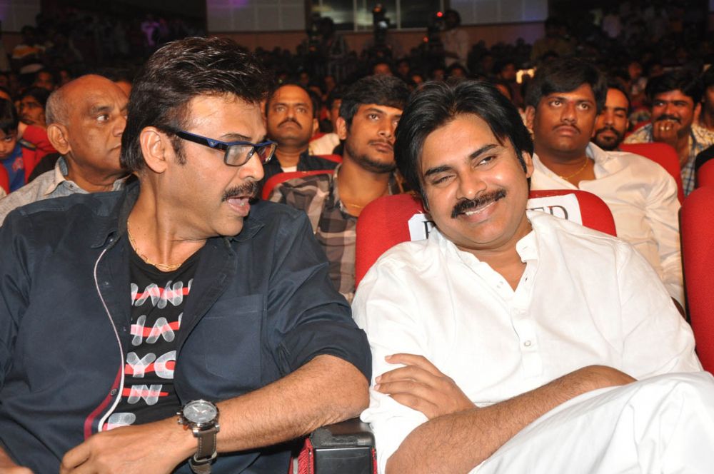Pawan Kalyan and Venkatesh's "Gopala Gopala" audio released at a grand event in Shilpa Kala Vedika. Director Trivikram Srinivas attended as chief guest. Makers are planning to release the movie on 9th January.