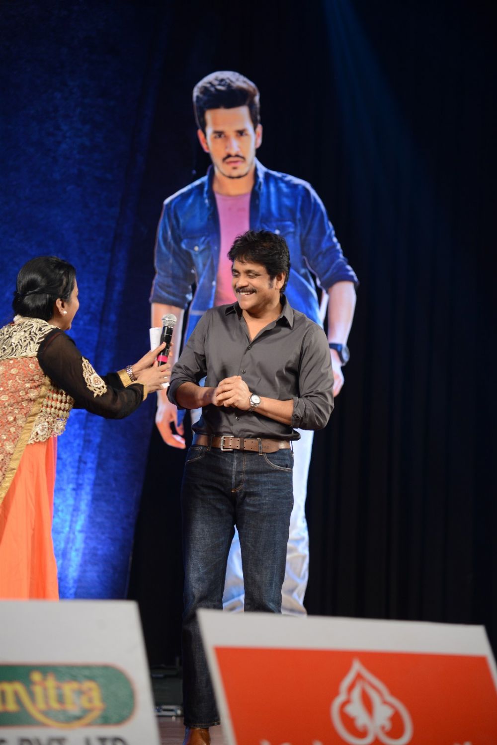 Launch of Akhil Akkineni and his debut film was held at a grand event in Shilpa Kala Vedika. Akkineni Nagarjuna and Amala introduced their son to the Telugu audience. Actor Nithiin is producing Akhil's debut flick and VV Vinayak is the director. Bollywood star Dilip Kumar's grand daughter Sayessha is making her Tollywood debut with this movie.