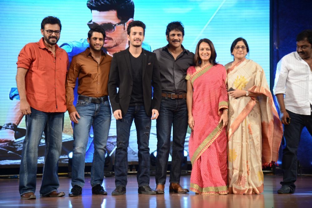 Launch of Akhil Akkineni and his debut film was held at a grand event in Shilpa Kala Vedika. Akkineni Nagarjuna and Amala introduced their son to the Telugu audience. Actor Nithiin is producing Akhil's debut flick and VV Vinayak is the director. Bollywood star Dilip Kumar's grand daughter Sayessha is making her Tollywood debut with this movie.
