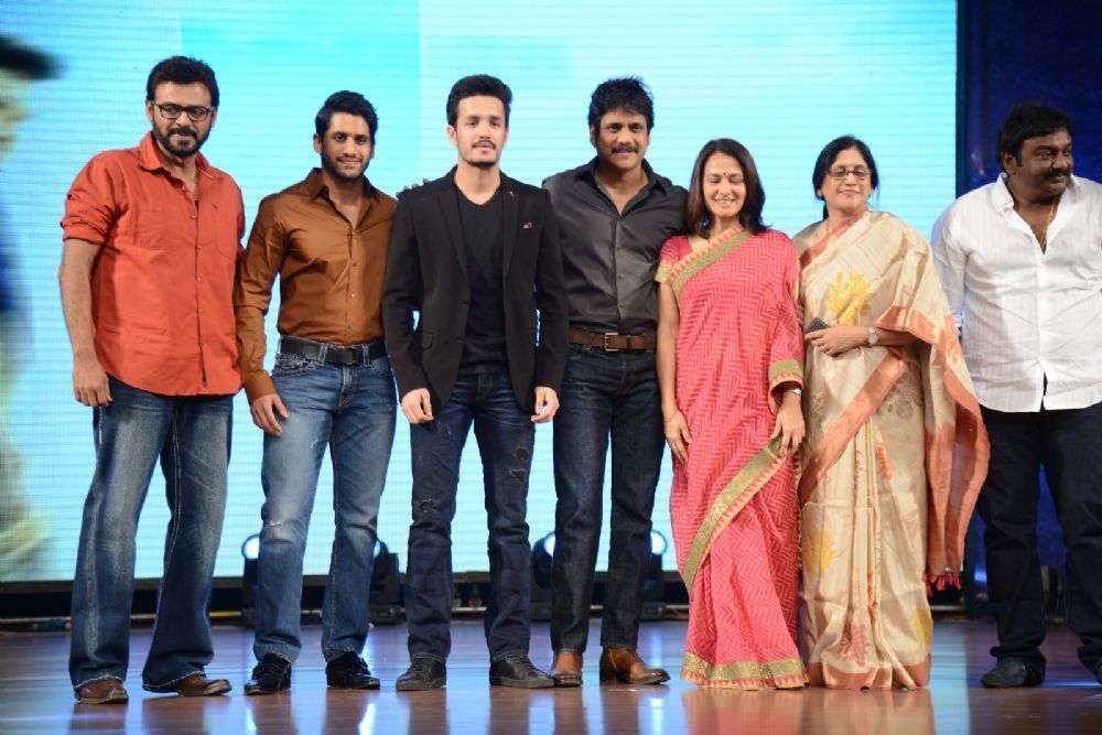 Launch of Akhil Akkineni and his debut film was held at a grand event in Shilpa Kala Vedika. Akkineni Nagarjuna and Amala introduced their son to the Telugu audience. Actor Nithiin is producing Akhil's debut flick and VV Vinayak is the director. Bollywood star Dilip Kumar's grand daughter Sayessha is making her Tollywood debut with this movie.