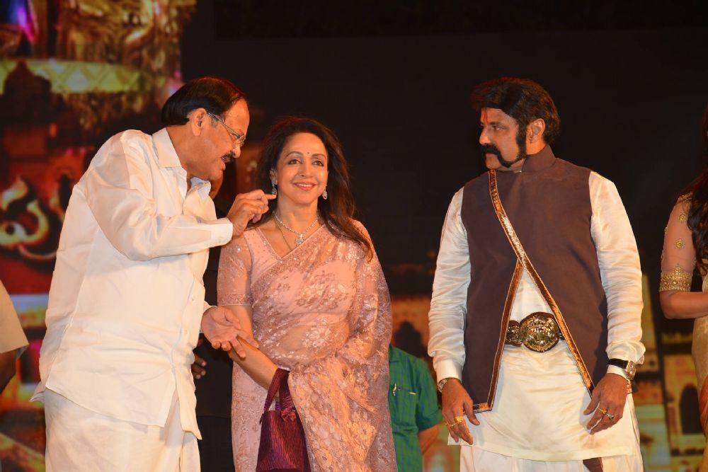 Andhra Pradesh Chief Minister N Chandrababu Naidu attended as chief guest and launched the audio of Nandamuri Balakrishna's 100th movie Gauthamiputra Sathakarni on Monday evening.