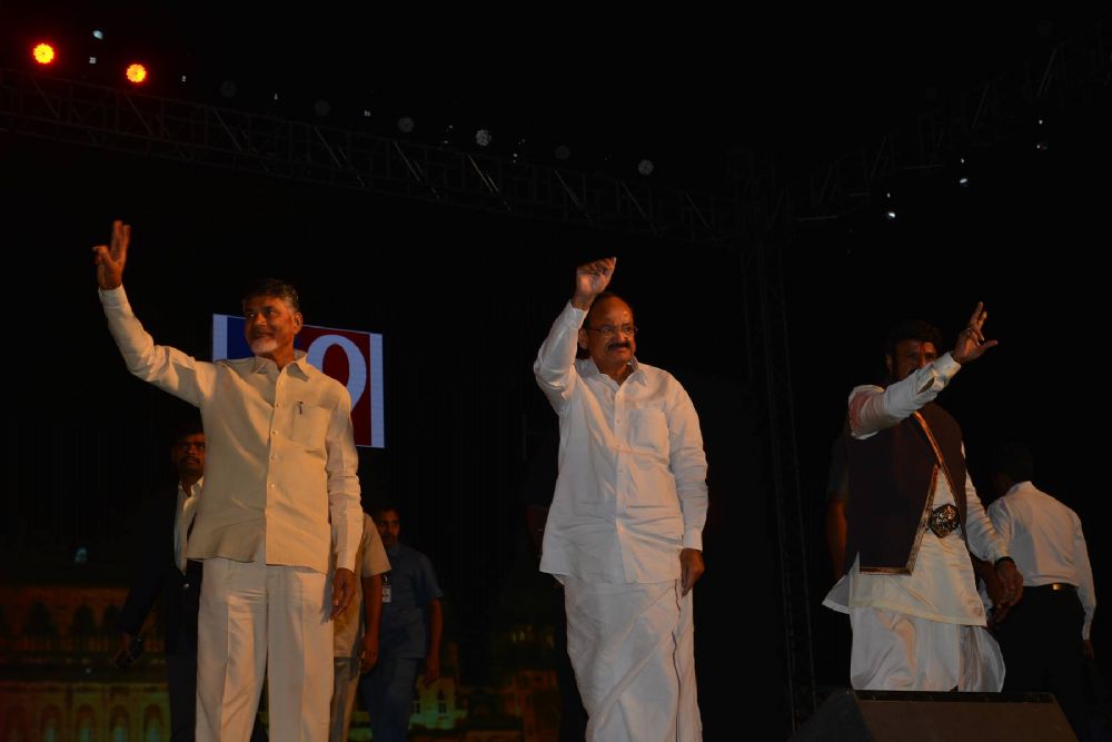 Andhra Pradesh Chief Minister N Chandrababu Naidu attended as chief guest and launched the audio of Nandamuri Balakrishna's 100th movie Gauthamiputra Sathakarni on Monday evening.