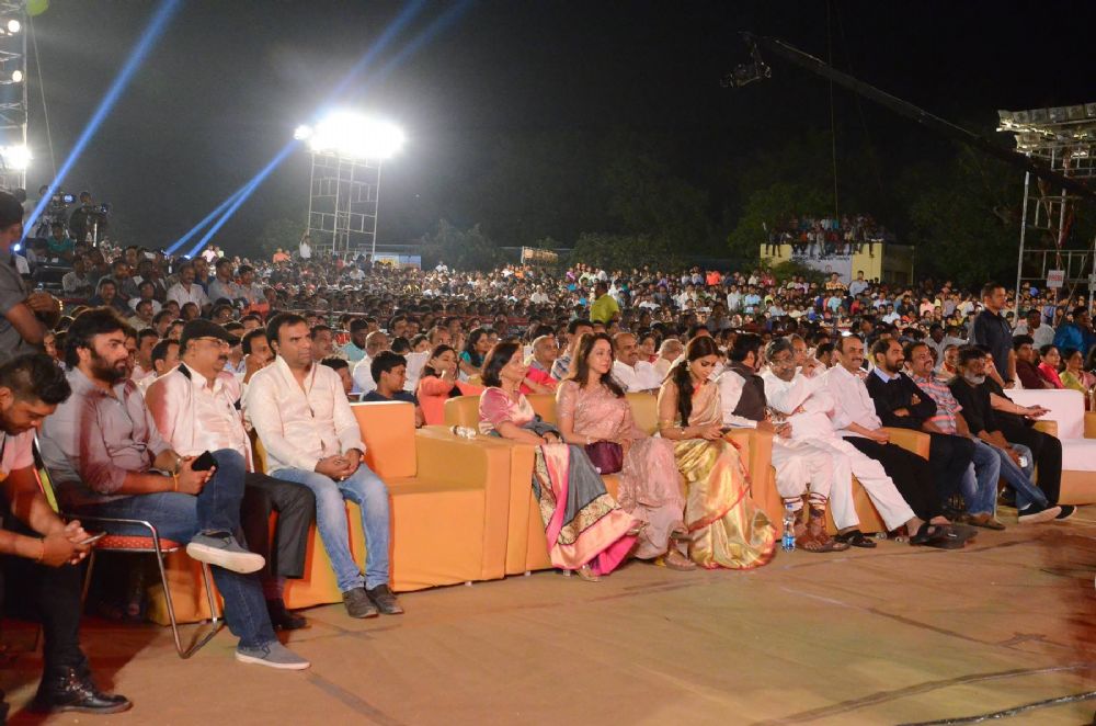 Andhra Pradesh Chief Minister N Chandrababu Naidu attended as chief guest and launched the audio of Nandamuri Balakrishna's 100th movie Gauthamiputra Sathakarni on Monday evening.