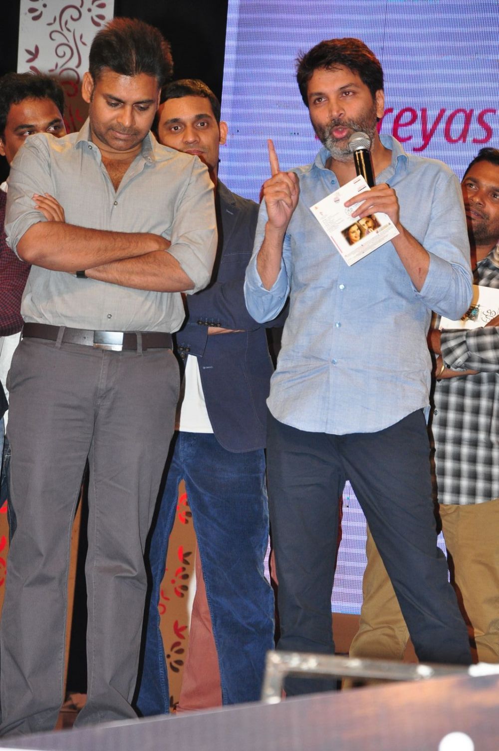 Pawan Kalyan attended as chief guest and launched the audio of A Aa at Shilpakala Vedika on Monday.