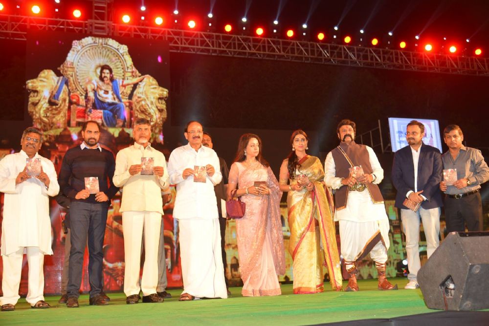 Andhra Pradesh Chief Minister N Chandrababu Naidu attended as chief guest and launched the audio of Nandamuri Balakrishna's 100th movie Gauthamiputra Sathakarni on Monday evening.
