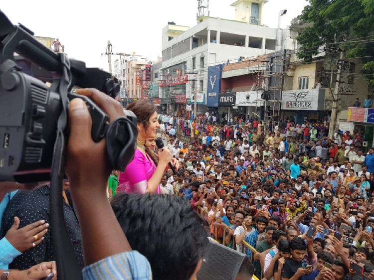 Raashi Khanna at Tirupati to launch CMR showroom.