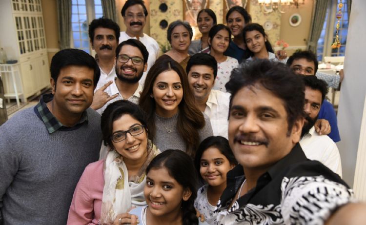 Stills from the sets of Akkineni Nagarjuna's Manmadhudu 2 movie.