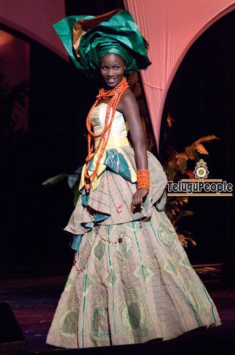 Sandra Otohwo, Miss Nigeria 2009, performs in a National Costume show in the Rainforest Theater at the Wyndham Hotel in Nassau, Bahamas on Monday, August 10, 2009 as part of the preparations for the Miss Universe 2009 competition.