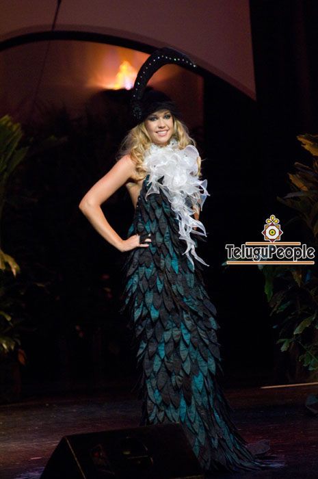 Katie Taylor, Miss New Zealand 2009, performs in a National Costume show in the Rainforest Theater at the Wyndham Hotel in Nassau, Bahamas on Monday, August 10, 2009 as part of the preparations for the Miss Universe 2009 competition.