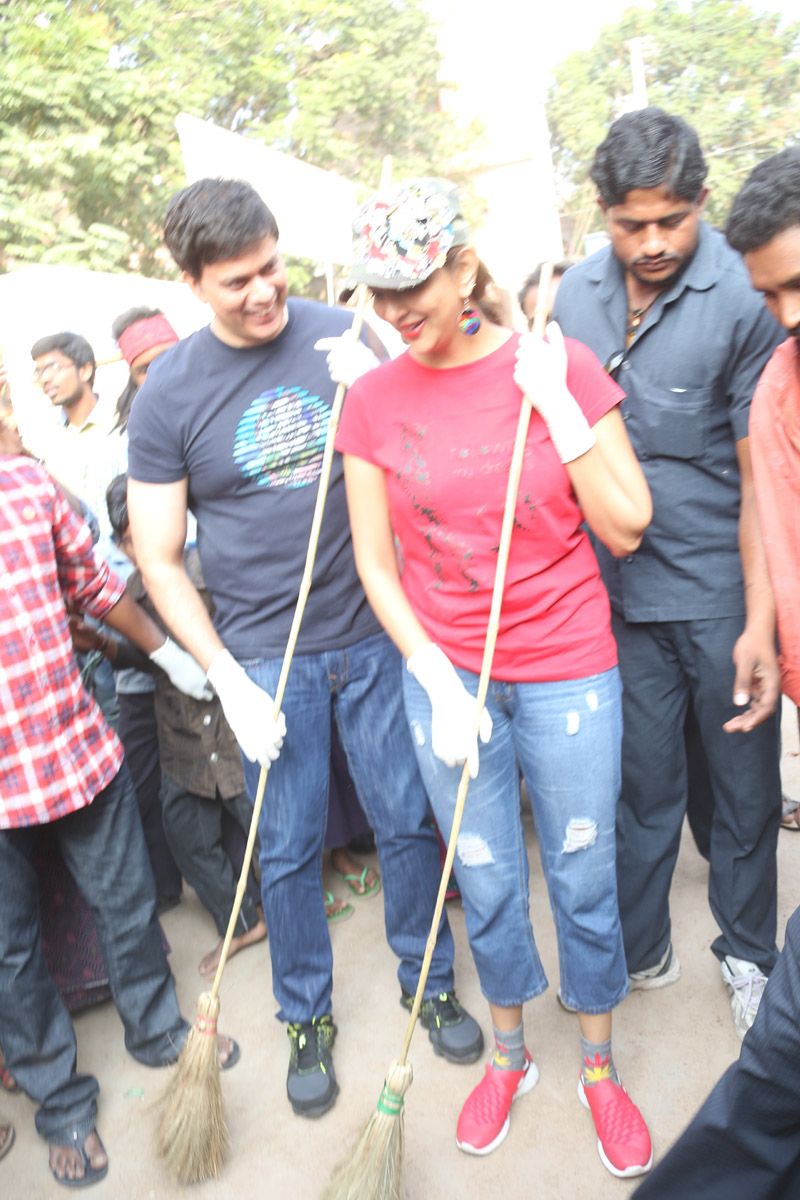 Manchu Lakshmi joins the list of Tollywood celebrities who took part in Swacch Bharat campaign and cleaned the streets of Hyderabad.